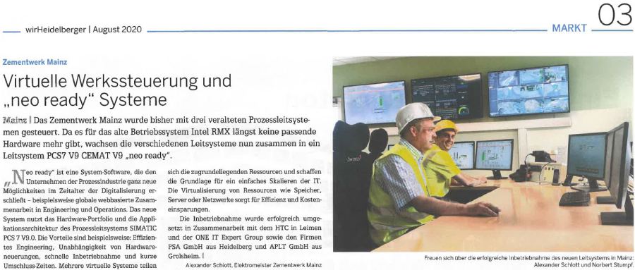 Virtuelles Leitsystem im rheinland-pfälzischem Zementwerk in Betrieb